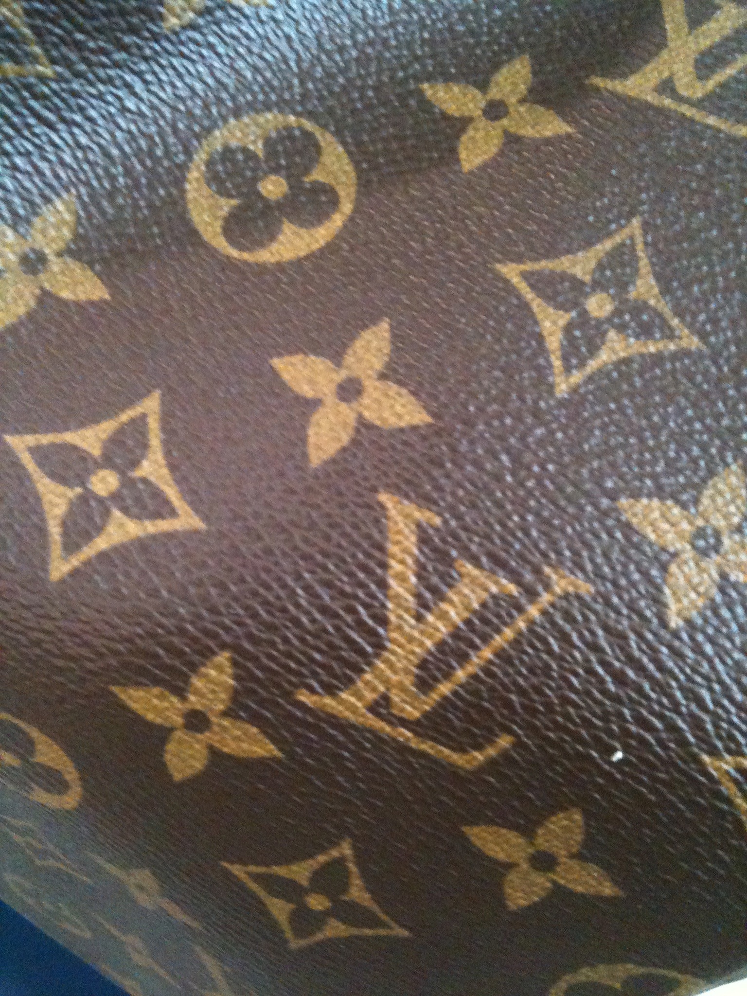 LV is a large bag, dark brown in color with tan LV’s all over him. He has a unique handle that seems like it would be very comfortable to hold.